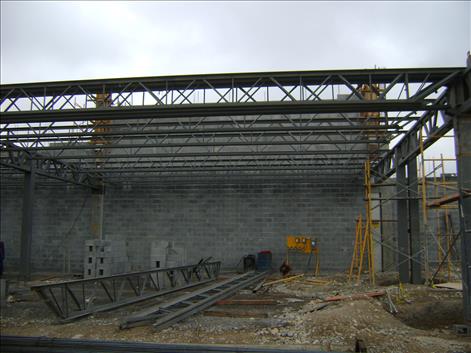Los trabajos realizados incluyen: excavación y construcción de cimentación, fabricación y montaje de estructura metálica, laminación, colado de firmes y losas de entrepiso, instalaciones eléctricas, hidráulicas y sanitarias, pavimentación, herrería, aplanado de yeso en muros, pulido de pisos, fabricación e instalación de cancelería, pintura y señalización.