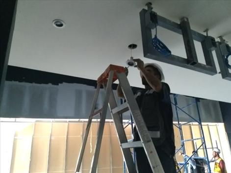 Instalaciones en Baja Tensión que incluyen soporteria, canalización, cableado y alumbrado de 6 salas, área de lobby y dulcería. Armado de tableros en Cuarto Eléctrico.